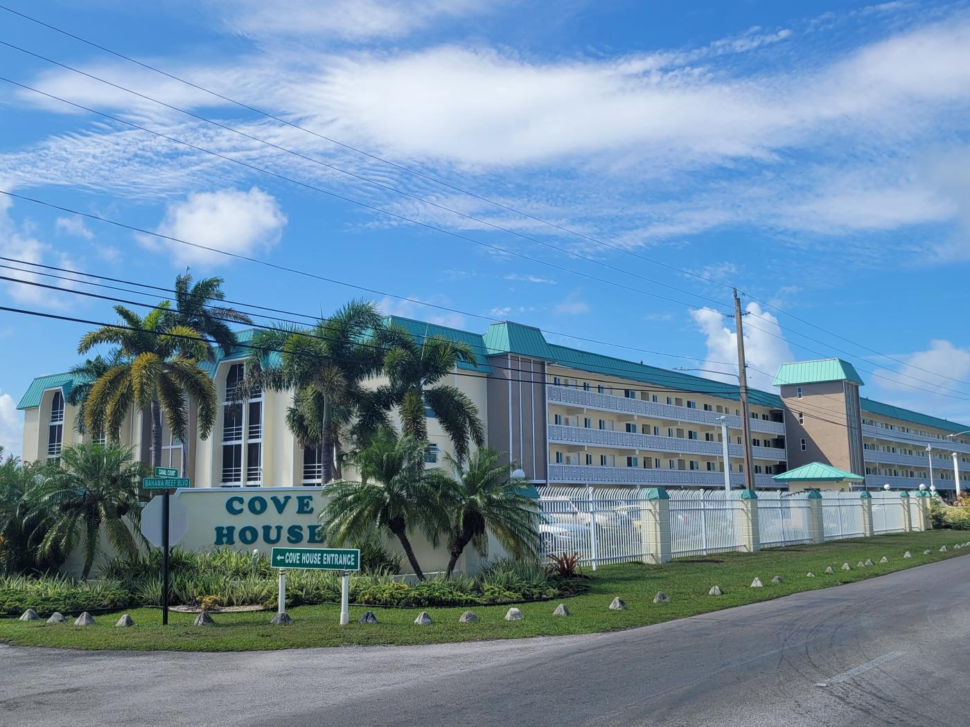 Cove House Condominiums is a busy four story Lucaya area condominium building with 140 units, tennis courts, pool and marina.